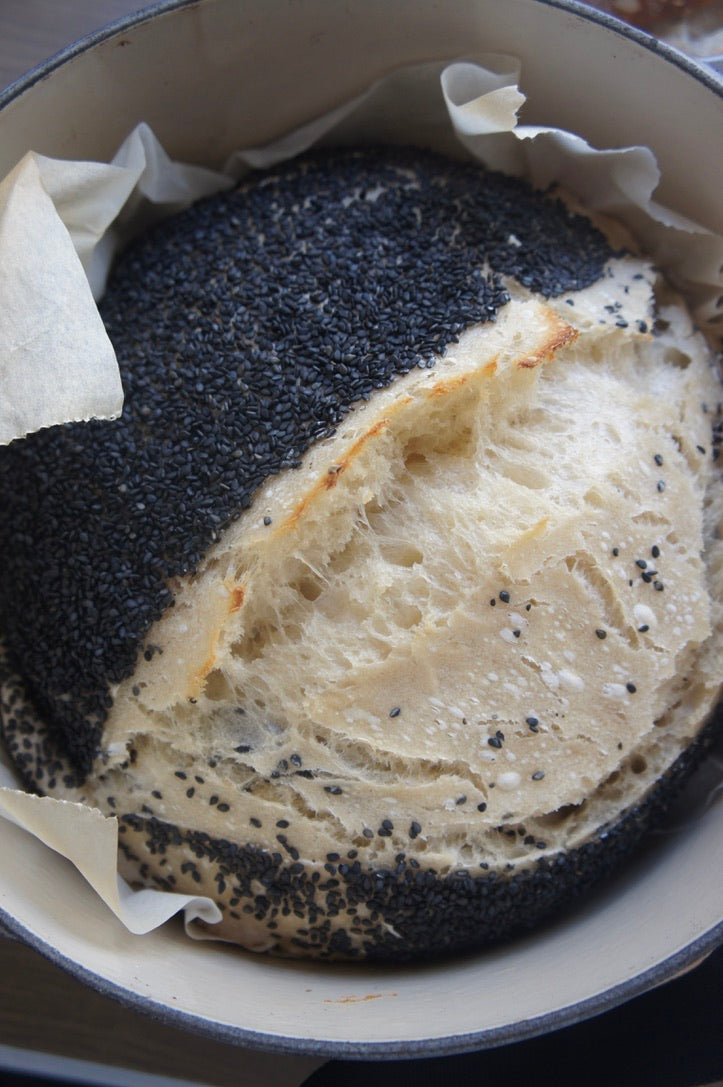 Country Loaf 800g made with Sourdough Starter; Water; Strong Flour; Salt; Black Sesame Seeds