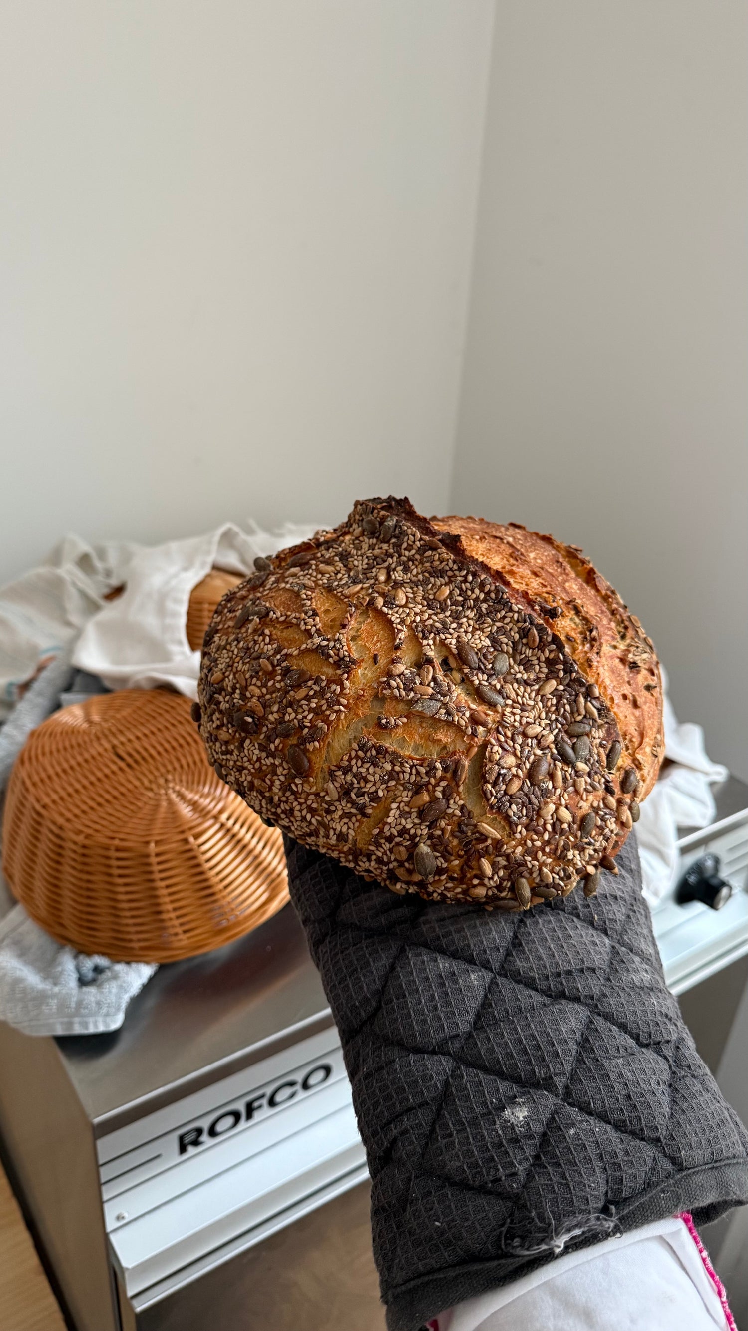 Made with: Sourdough Starter; Water; Strong Flour 65; Sesame Seeds; Pumpkin Seeds; Sunflower Seeds; Salt.